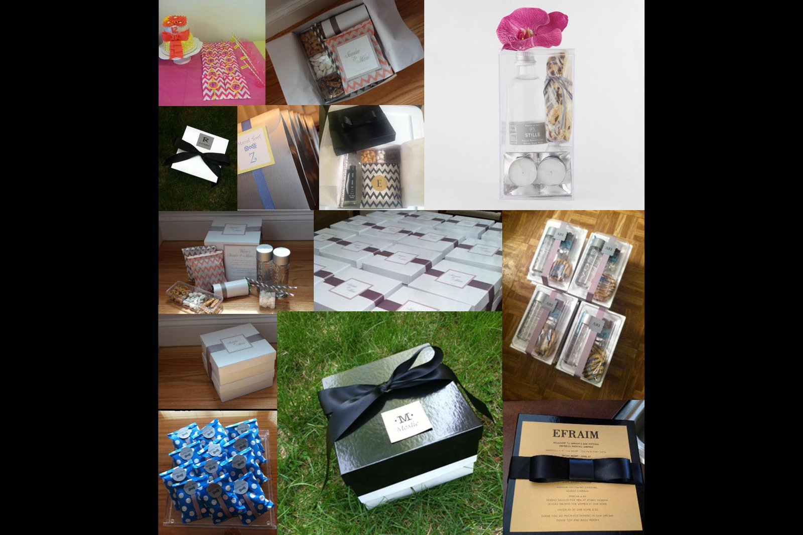 Hostess Packages Party Favors Aufruf Bags Party Bags Hostess Gifts Making a Simcha and want to it to be memorable? Your guests will be thrilled with delight with the hostess packages they receive from “Host It!” At Host It!, we prepare the finest in custom hostess packages and welcome boxes for your guests for just about any occasion. Whether it be for weddings, Sheva Brochos, Bar Mitzvahs, Aufrufs, Brissim, Pidyon Habens, at Host It! we have the personalized package that conveys your own message of gratitude to your guests. We offer the finest quality of fresh baked goods, candy, cookies, fruits, nuts and other goodies of your choice; all packaged in exquisitely designed trays, boxes, lucite containers and more. And each one will have your name inscribed to add that personal and warm touch!! Because we know that making a Simcha in a short amount of time can be most stressful, Host It! is here to make the task a breeze. With Host It! you just place your order and we do the rest, so it is one less detail that you have to be occupied with. If you’re looking for delectable delicacies or the most fashionable party favors, you’ve come to the right place as Host It! has a complete line to enhance your Simcha! Busy before Purim? No time to make the kind of special Shalach Manos that you know that family and friends will enjoy? Not to worry. At Host It! we offer a unique selection of personalized and customized Shalach Manos packages that are bound to add to the excitement of Purim!! In addition to individual packages, Host It! caters to volume orders often required by businesses, schools and organizations. Corporate accounts are Host its specialty and we are now offering special discounts. At Host It! we know that your Simcha is a once in a lifetime occasion and that the memories will endure forever. As such, creating custom orders that have your personal “fingerprint” on them is our specialty. Our experienced team of hostess package designers relish the opportunity to learn more about you; to work with you in tandem to create the packages of your dreams. Call us today to discuss details and special offers. Hiring a party planner for your most special Simcha? No problem at at Host It! We roll out the red carpet for these special individuals that pay so much attention to detail in coordinating your memorable day. Our enthusiastic staff takes sheer delight in working with your party planner to ensure that your beautifully crafted hostess packages will perfectly suit your tastes and will astound your guests. And for you party planners out there, at Host It!, we sweeten the pot by offering a lucrative referral/commission program. Call us today to discuss the details and hear about our special offers” Contact Host It! at: [email protected] or 347-415-5145 for pricing and learn more about our summer specials!!