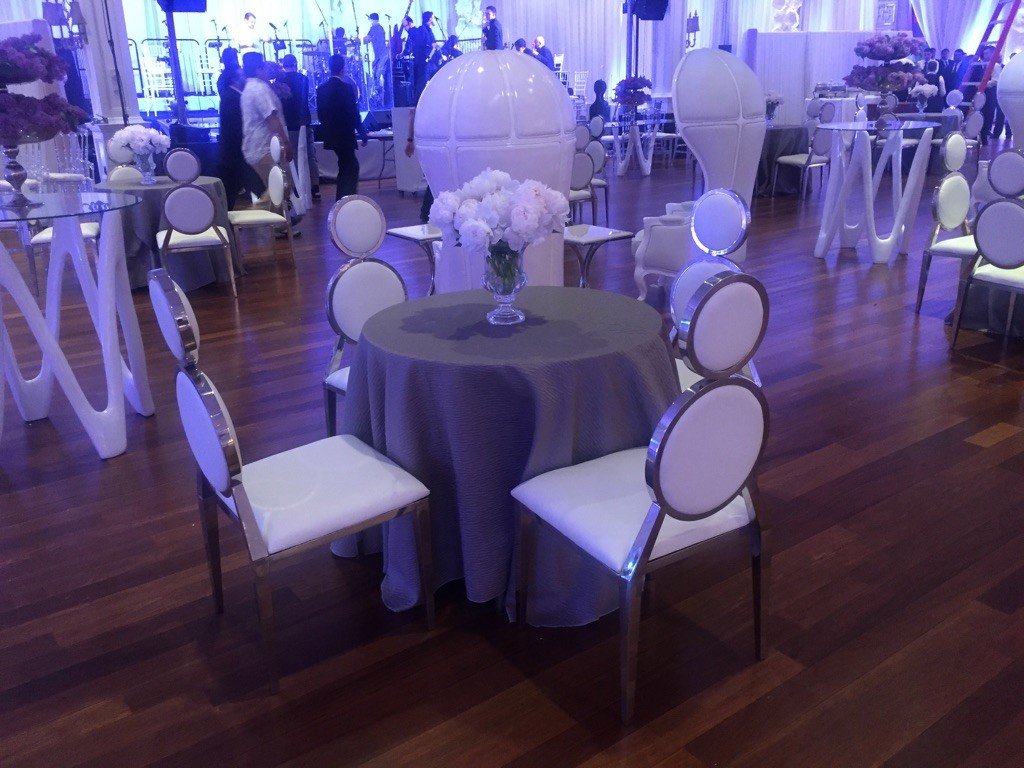 Tablecloths and Chair Covers rentals An upscale tablecloth rental, Le Tableau features all the fabulous brilliance behind festive party making. Embodying the aura of elegance, the feeling of sophistication, and the sheer mood of celebration, its fine line of fabric table coverings presents you with beautiful shades, prints, textures and styles, from simple to elaborate. Bolstered by all the details of experience involved in creating complete hotel affairs, the staff at Le Tableau takes your personal occasion seriously. At the showroom, your appointment centers upon your budget, your preferences and the scope of event you want, while personnel guide you to a uniquely beautiful design and color scheme. In addition, Le Tableau offers the option of selecting from samples at no extra charge. And because delivery is followed by pick-up, and laundering is left up to Le Tableau, the pleasure of it all remains intrinsically yours from start to finish. Highlighting unlimited potential of enhancement, Le Tableau also gives you the option of handsome props, as well as an exclusive grand white leather, one-seater kallah couch. Tablecloths and props by Le Tableau: transcending mediocrity, creating the charm to your occasion!